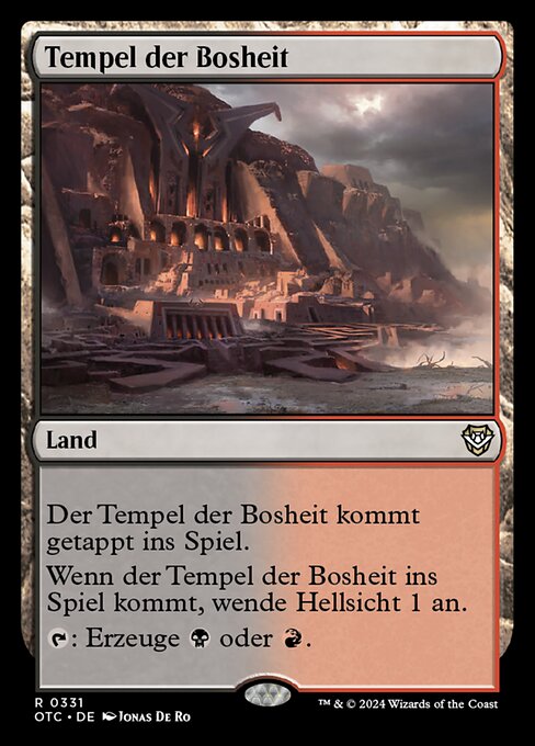 |  Variations— Parts— | Temple of MaliceThis land enters tapped. When this land enters, scry 1. (Look at the top card of your library. You may put that card on the bottom.)