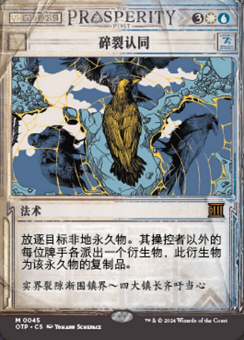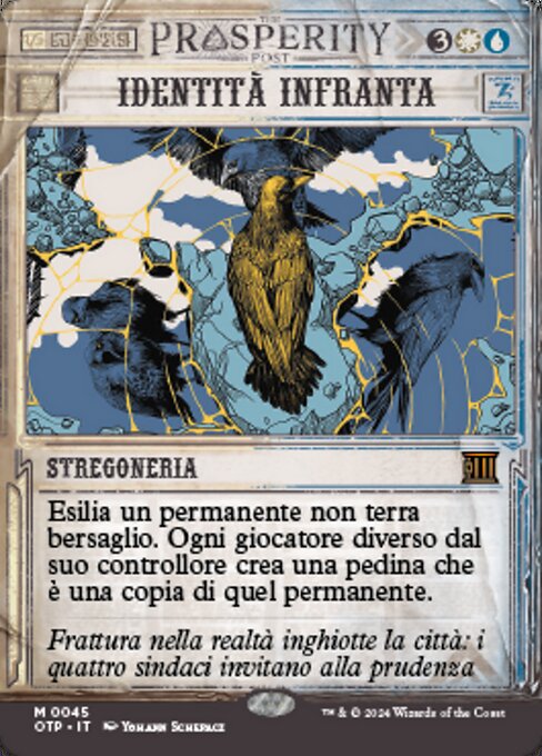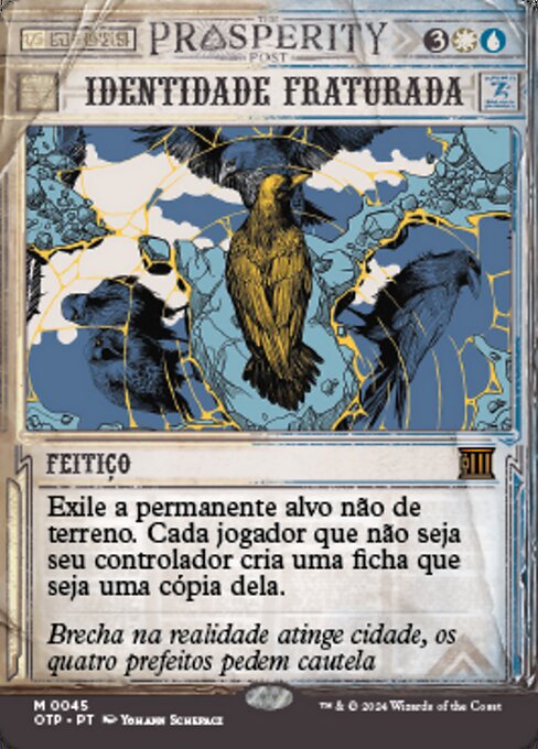 |  Variations— Parts— | Identidade FraturadaExile a permanente alvo não de terreno. Cada jogador que não seja seu controlador cria uma ficha que seja uma cópia dela.