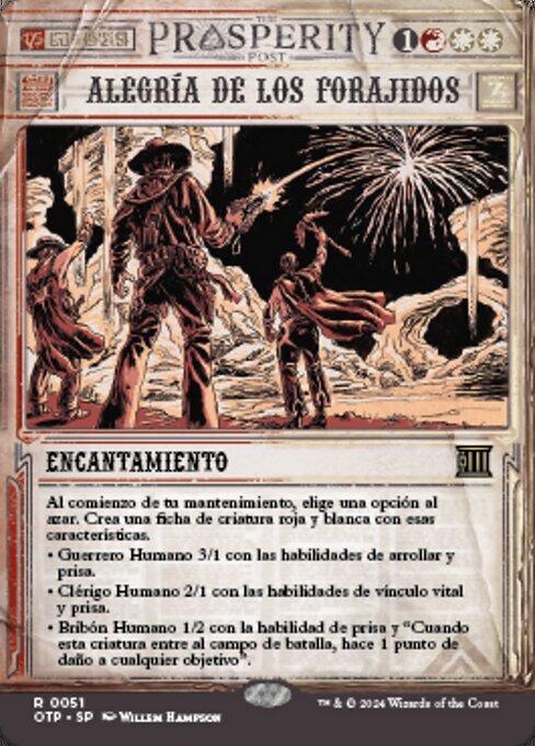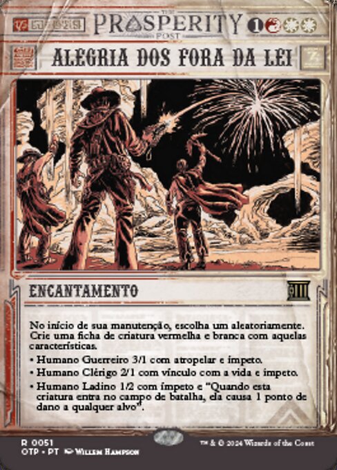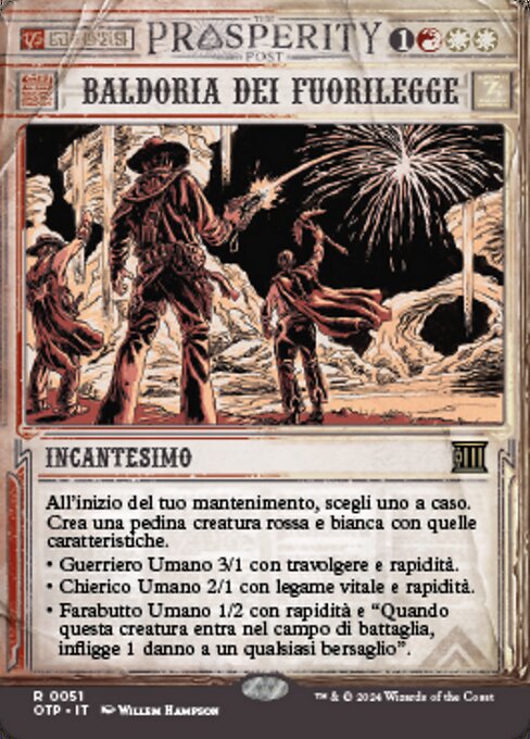 LegalitiesLegal Duel Brawl Penny Legacy Modern Pioneer Vintage Historic Timeless Commander Gladiator Oathbreaker Not Legal Predh Future Pauper Alchemy Standard Oldschool Premodern Standardbrawl Paupercommander RulingsAs you put the triggered ability of Outlaws' Merriment on the stack, you choose a mode at random. Players can respond to the ability knowing which token will be created.