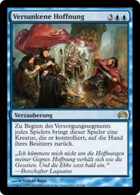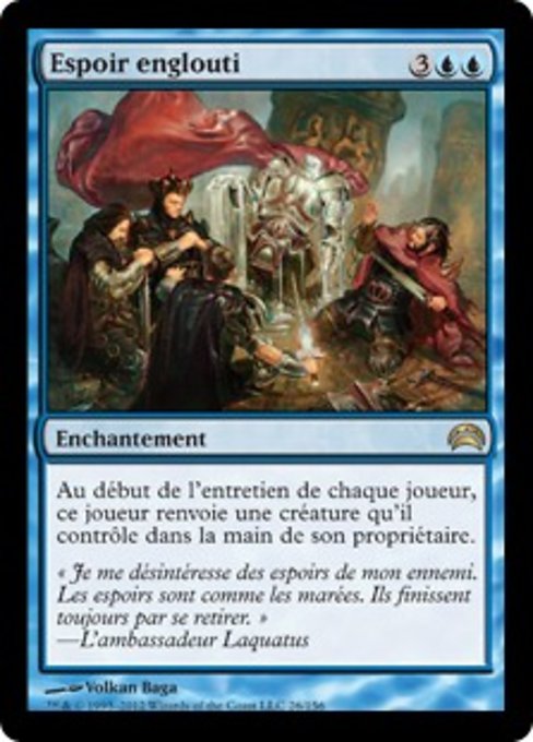 |  Variations— Parts— | Espoir engloutiAu début de l'entretien de chaque joueur, ce joueur renvoie une créature qu'il contrôle dans la main de son propriétaire.