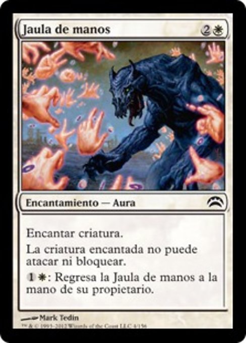 ![]() Variations— Parts— | Cage de mainsEnchanter : créature La créature enchantée ne peut ni attaquer ni bloquer.