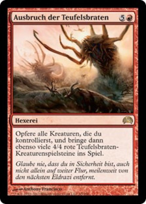|  Variations— Parts— | Eruzione di InfernaliSacrifica tutte le creature che controlli, poi metti sul campo di battaglia altrettante pedine creatura Infernale 4/4 rosse.