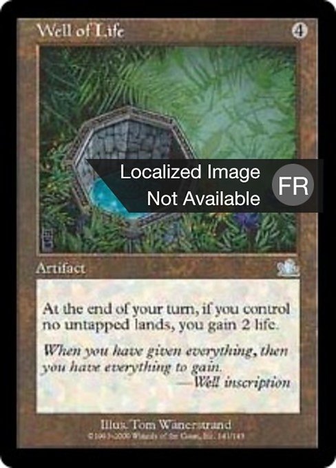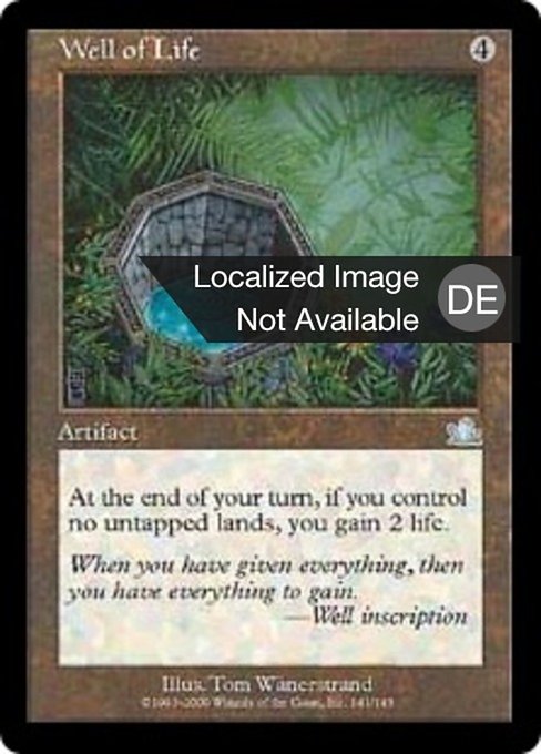 |  Variations— Parts— | Well of LifeAt the beginning of your end step, if you control no untapped lands, you gain 2 life.