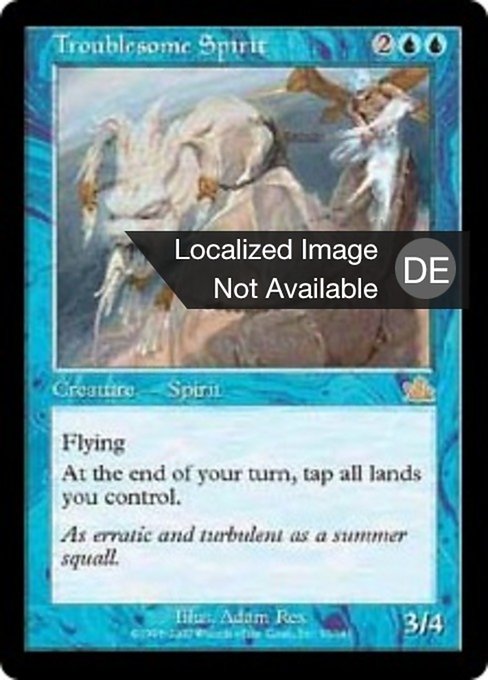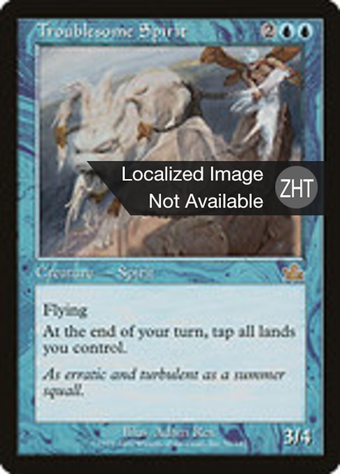 |  Variations— Parts— | Troublesome Spirit3 / 4 Flying At the beginning of your end step, tap all lands you control.