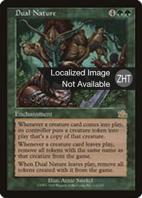 If Dual Nature leaves the battlefield between when it triggers and when a token is put onto the battlefield, that token remains on the battlefield indefinitely. It missed the separate ability which would have exiled the token.