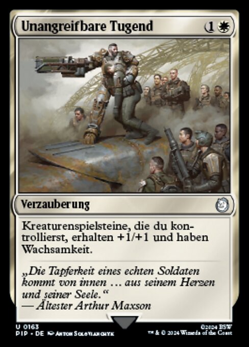 |  Variations : 1Parts— | Intangible VirtueCreature tokens you control get +1/+1 and have vigilance.