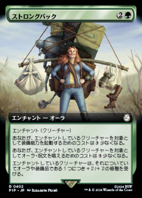|  Variations : 3Parts— | Strong BackEnchant creature Equip abilities you activate that target enchanted creature cost Aura spells you cast that target enchanted creature cost Enchanted creature gets +2/+2 for each Aura and Equipment attached to it.