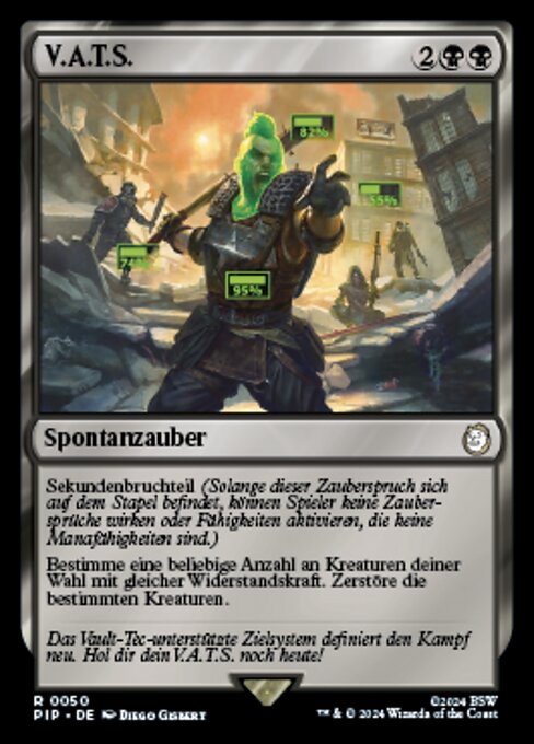 LegalitiesLegal Duel Legacy Vintage Commander Oathbreaker Not Legal Brawl Penny Predh Future Modern Pauper Alchemy Pioneer Historic Standard Timeless Gladiator Oldschool Premodern Standardbrawl Paupercommander RulingsIf you choose just one target for V.A.T.S., that creature will be destroyed when V.A.T.S. resolves as long as it’s still a legal target, regardless of whether or not its toughness has changed since V.A.T.S. was cast.