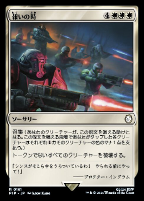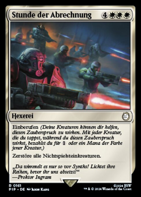 ![]() Variations— Parts— | La hora de la verdadConvocar. (Tus criaturas pueden ayudar a lanzar este hechizo. Cada criatura que gires al lanzar este hechizo cuenta como un pago de Destruye todas las criaturas que no sean fichas.