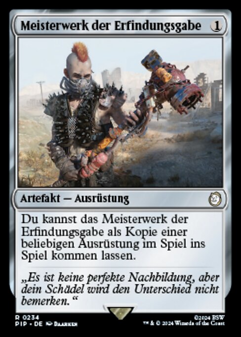 |  Variations— Parts— | Obra maestra del ingenioPuedes hacer que la Obra maestra del ingenio entre al campo de batalla como una copia de cualquier Equipo en el campo de batalla.