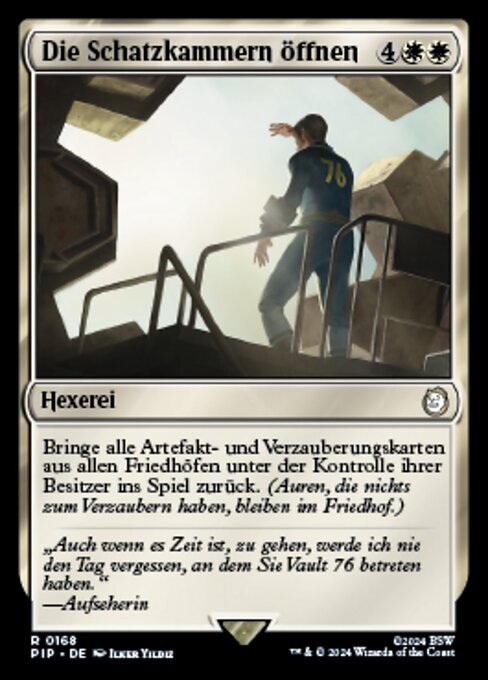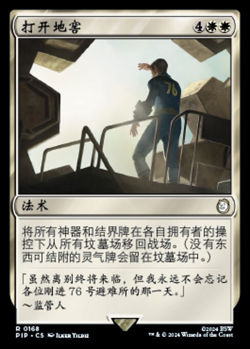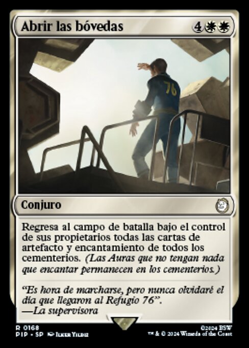 ![]() Variations— Parts— | Aprire le CripteRimetti sul campo di battaglia tutte le carte artefatto e incantesimo da tutti i cimiteri sotto il controllo dei rispettivi proprietari. (Le Aure che non hanno nulla da incantare rimangono nei cimiteri.)