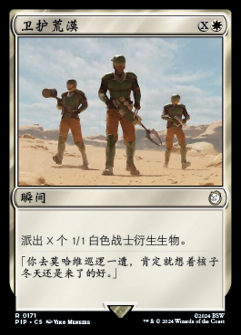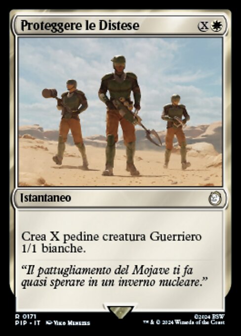 |  Variations— Parts— | Proteggere le DisteseCrea X pedine creatura Guerriero 1/1 bianche.