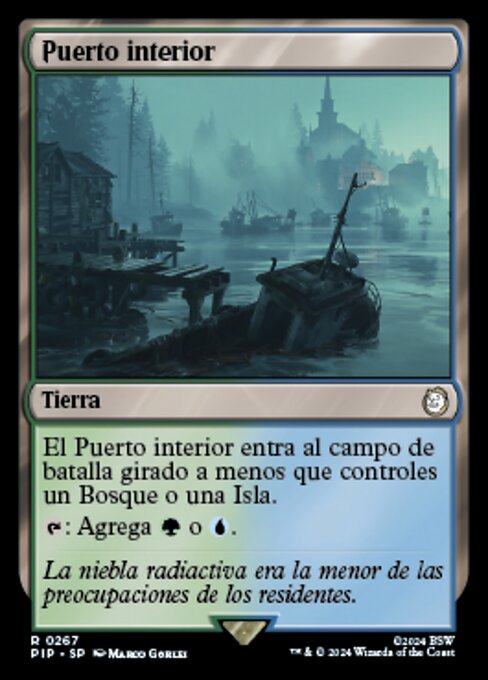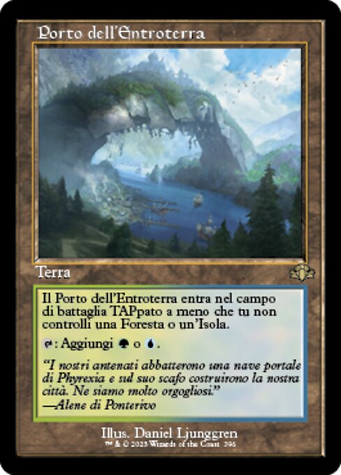 |  Variations— Parts— | Porto dell'EntroterraIl Porto dell'Entroterra entra nel campo di battaglia TAPpato a meno che tu non controlli una Foresta o un'Isola.