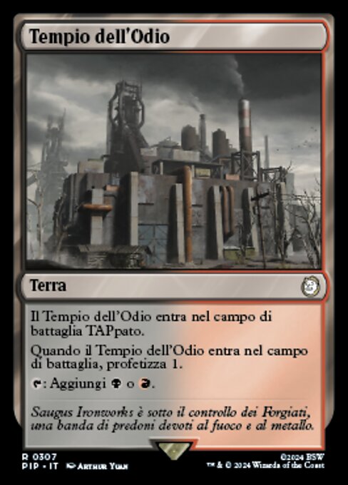 |  Variations— Parts— | Tempio dell'OdioIl Tempio dell'Odio entra nel campo di battaglia TAPpato. Quando il Tempio dell'Odio entra nel campo di battaglia, profetizza 1.