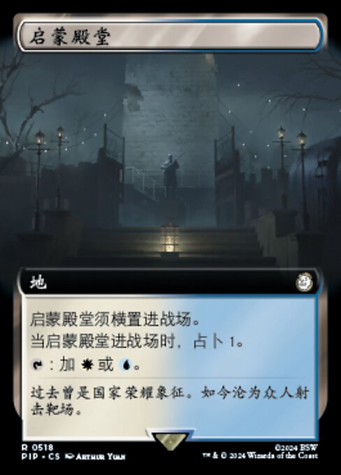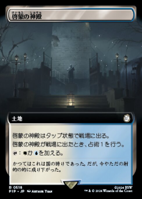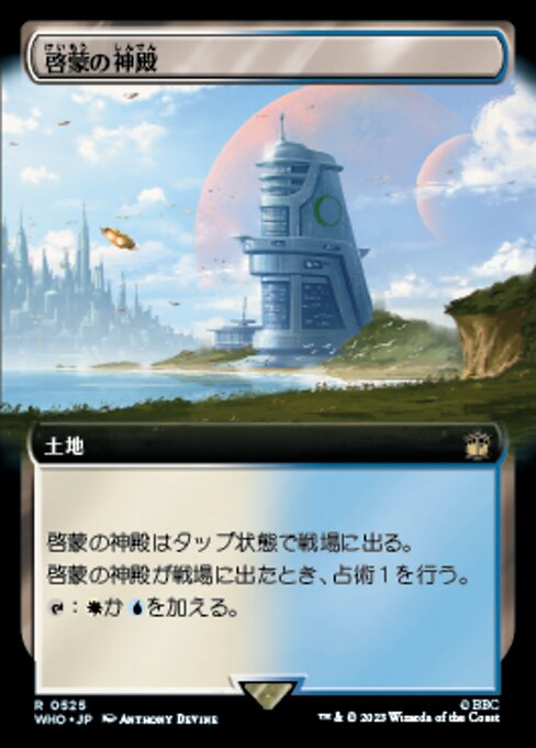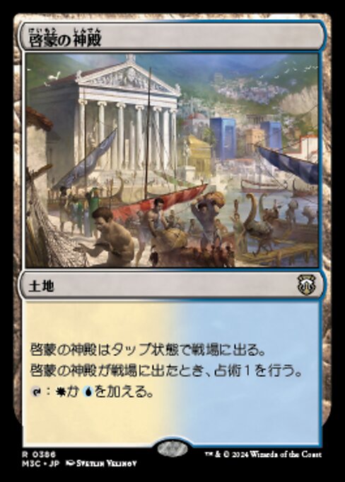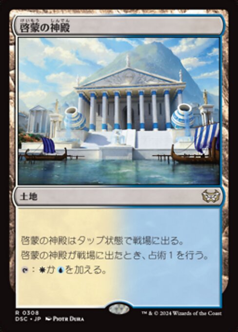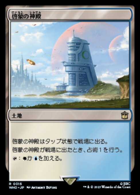 ![]() Variations : 1Parts— | 啓蒙の神殿啓蒙の神殿はタップ状態で戦場に出る。 啓蒙の神殿が戦場に出たとき、占術1を行う。