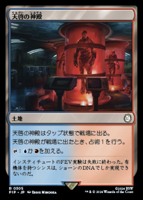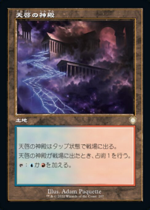 |  Variations : 1Parts— | 天啓の神殿天啓の神殿はタップ状態で戦場に出る。 天啓の神殿が戦場に出たとき、占術1を行う。
