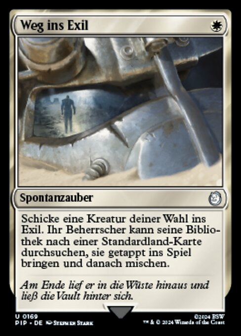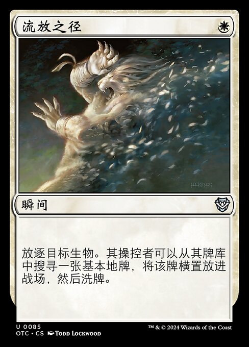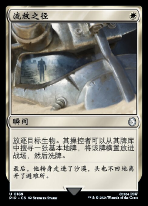 |  Variations— Parts— | 流放之径放逐目标生物。其操控者可以从其牌库中搜寻一张基本地牌,将该牌横置放进战场,然后洗牌。