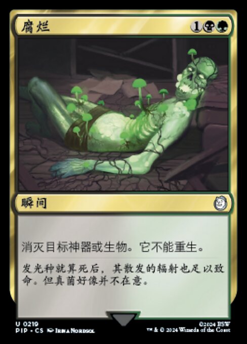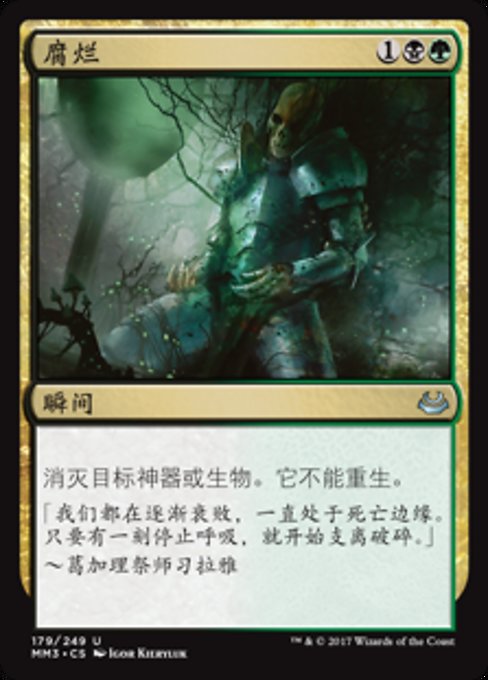 |  Variations— Parts— | 腐烂消灭目标神器或生物。它不能重生。
