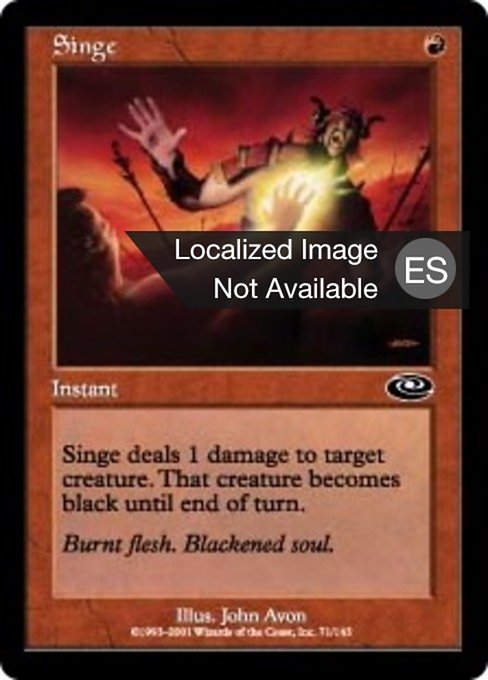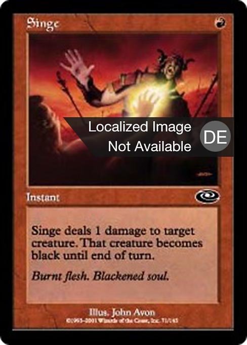 ![]() Variations— Parts— | SingeSinge deals 1 damage to target creature. That creature becomes black until end of turn.