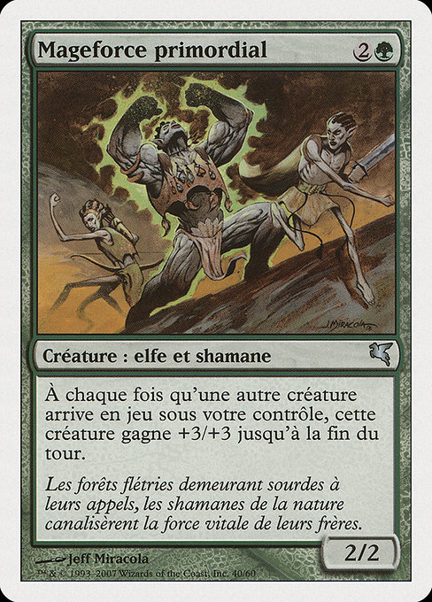 |  Variations : 2Parts— | Mago della Forza Primordiale2 / 2 Whenever another creature you control enters, that creature gets +3/+3 until end of turn.