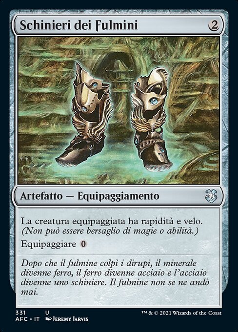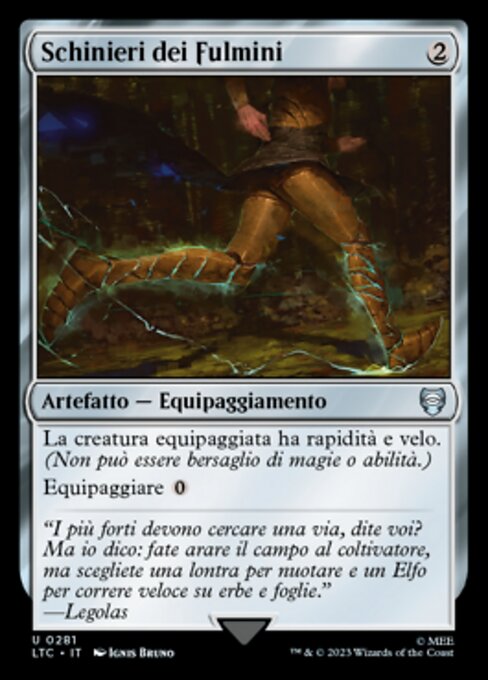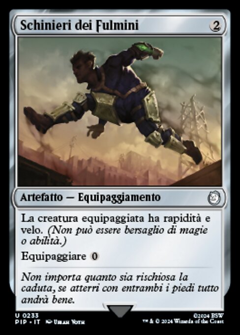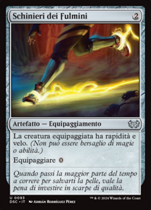 |  Variations— Parts— | Schinieri dei FulminiEquipped creature has haste and shroud. (It can't be the target of spells or abilities.) Equip