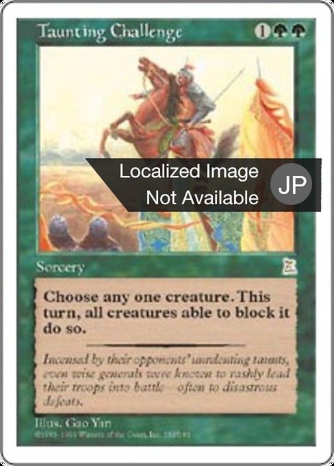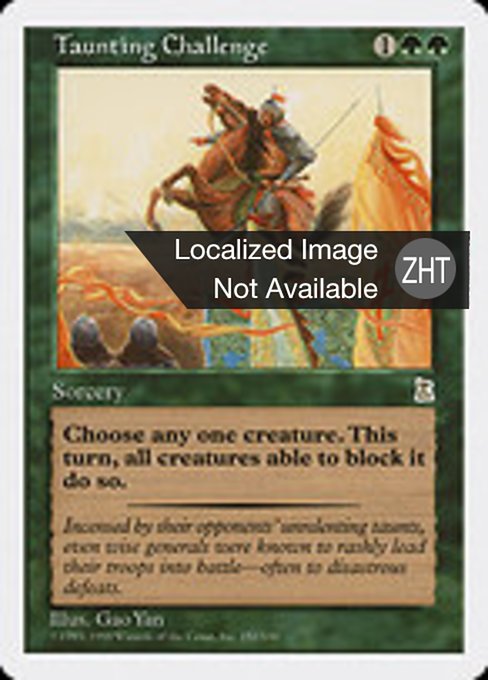 |  Variations— Parts— | Taunting ChallengeAll creatures able to block target creature this turn do so.