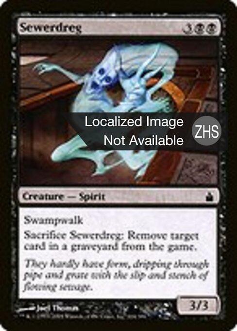 |  Variations— Parts— | Sewerdreg3 / 3 Swampwalk (This creature can't be blocked as long as defending player controls a Swamp.) Sacrifice this creature: Exile target card from a graveyard.