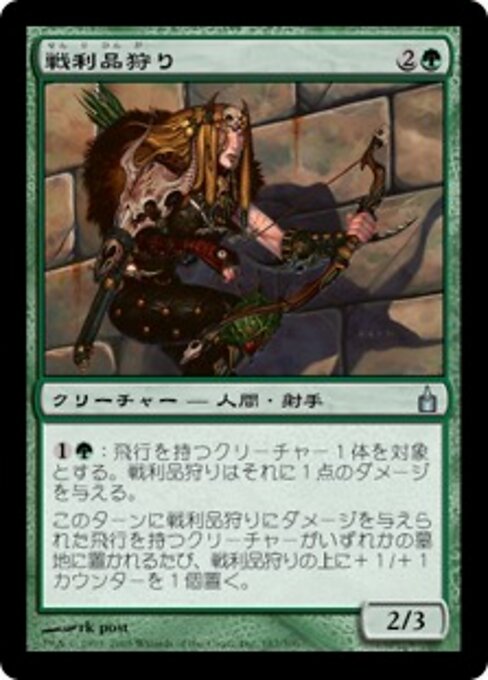 ![]() Variations— Parts— | Trophy Hunter2 / 3 Whenever a creature with flying dealt damage by this creature this turn dies, put a +1/+1 counter on this creature.