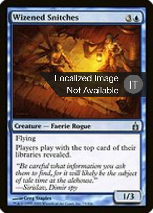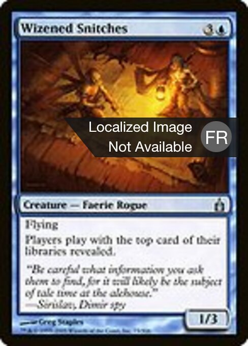![]() Variations— Parts— | Wizened Snitches1 / 3 Flying Players play with the top card of their libraries revealed.