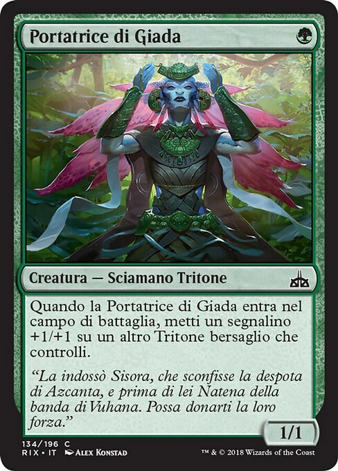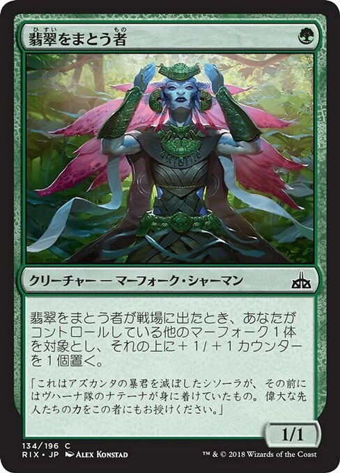 |  Variations— Parts— | Jade Bearer1 / 1 When this creature enters, put a +1/+1 counter on another target Merfolk you control.