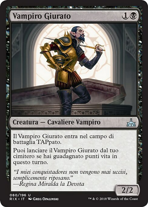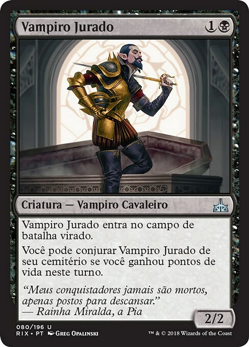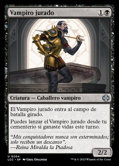 |  Variations— Parts— | Vampiro jurado2 / 2 El Vampiro jurado entra al campo de batalla girado. Puedes lanzar el Vampiro jurado desde tu cementerio si ganaste vidas este turno.