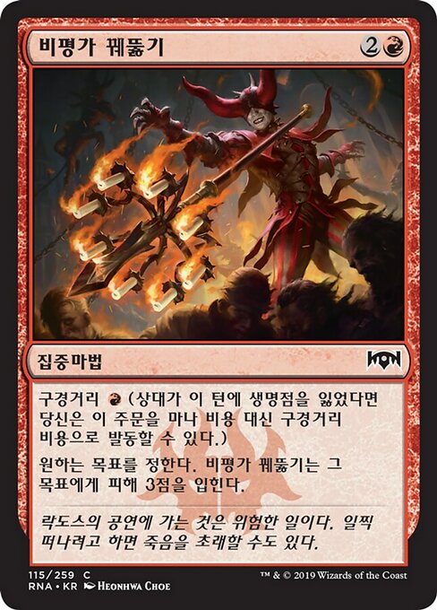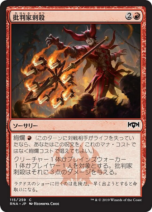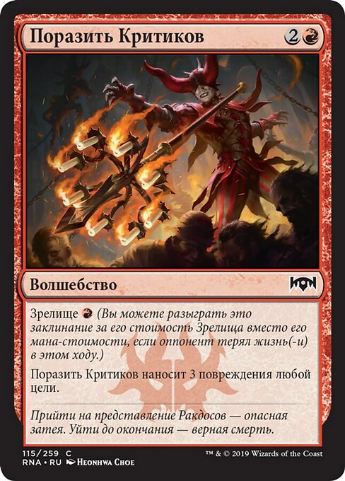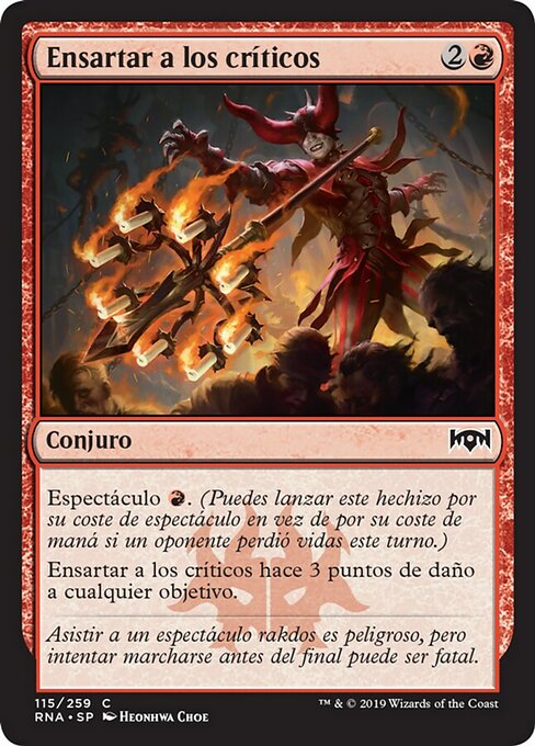 |  Variations— Parts— | Skewer the CriticsSpectacle  Skewer the Critics deals 3 damage to any target.
