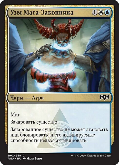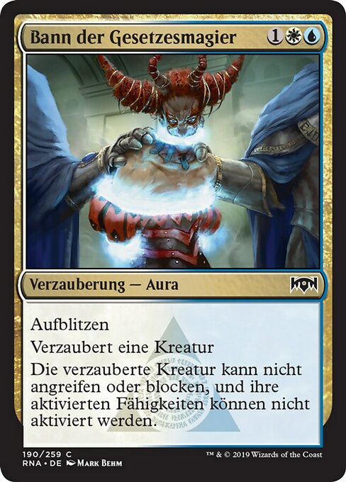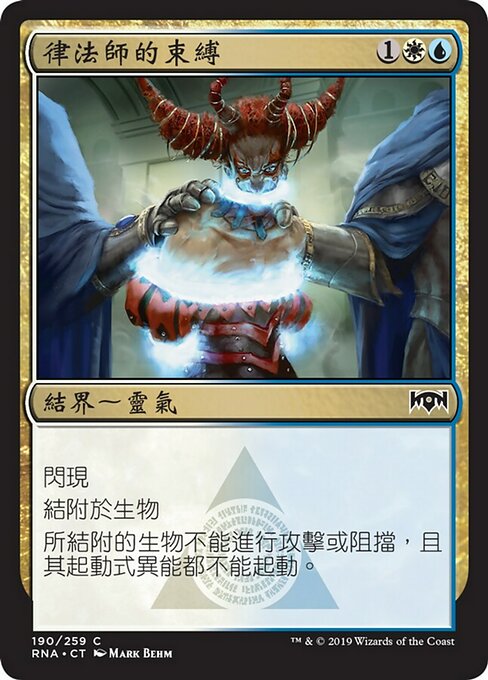 ![]() Variations— Parts— | Lawmage's BindingFlash Enchant creature Enchanted creature can't attack or block, and its activated abilities can't be activated.