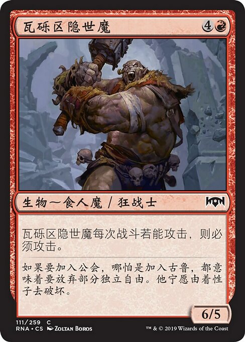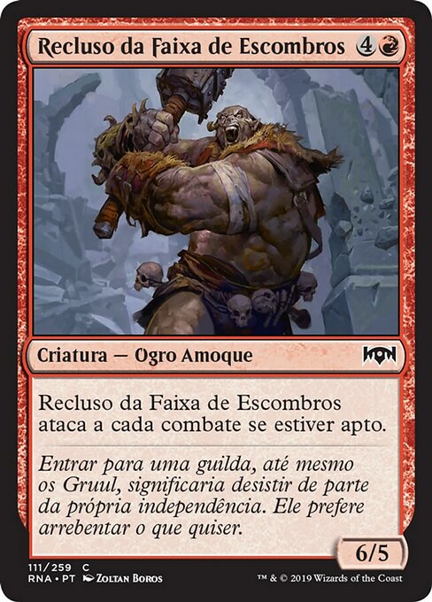 ![]() Variations— Parts— | Recluso da Faixa de Escombros6 / 5 Recluso da Faixa de Escombros ataca a cada combate se estiver apto.