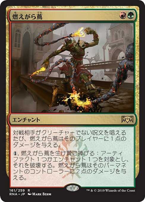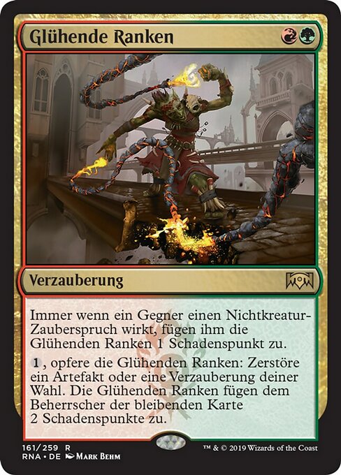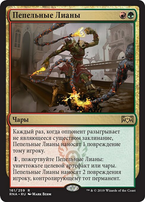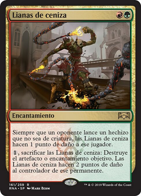 ![]() Variations— Parts— | Lianas ArdentesToda vez que um oponente conjura uma mágica que não seja de criatura, Lianas Ardentes causa 1 ponto de dano àquele jogador.
