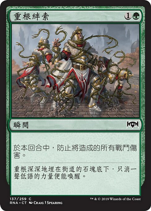 |  Variations— Parts— | 重根絆索於本回合中,防止將造成的所有戰鬥傷害。