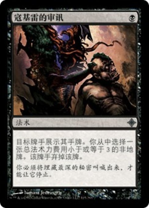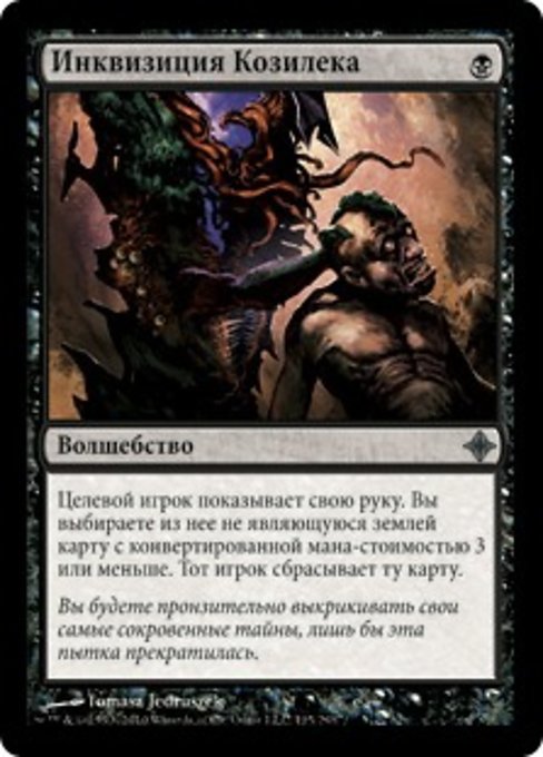 |  Variations— Parts— | Inquisition of KozilekTarget player reveals their hand. You choose a nonland card from it with mana value 3 or less. That player discards that card.