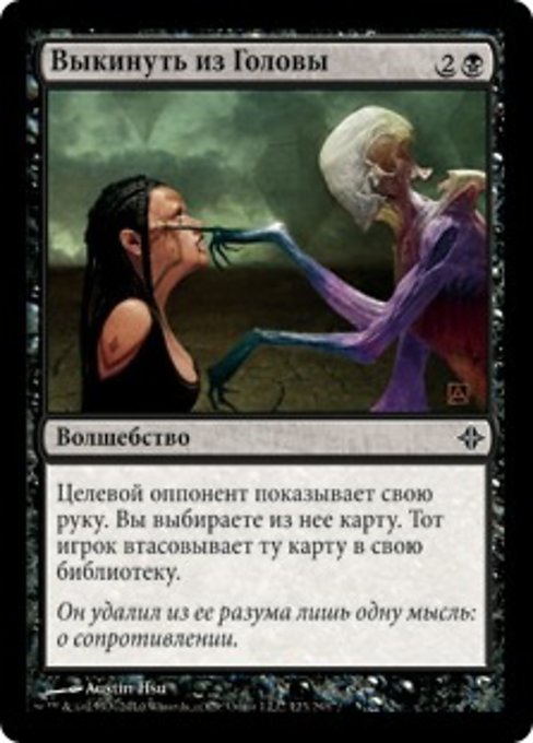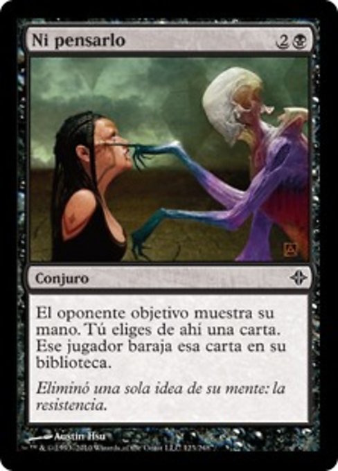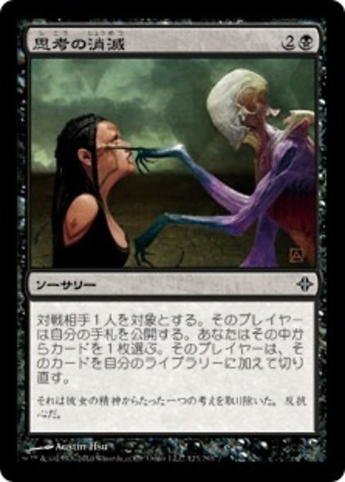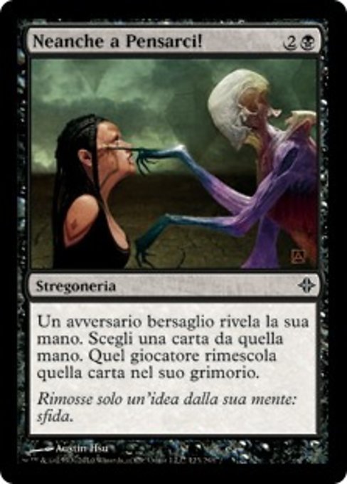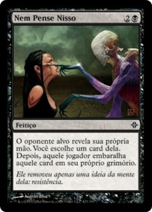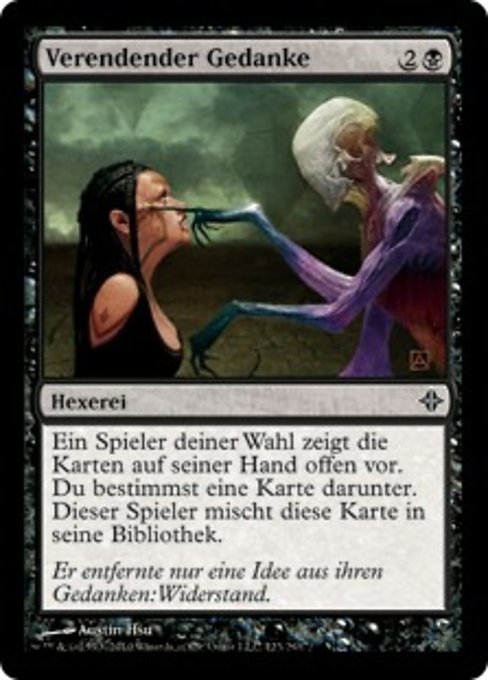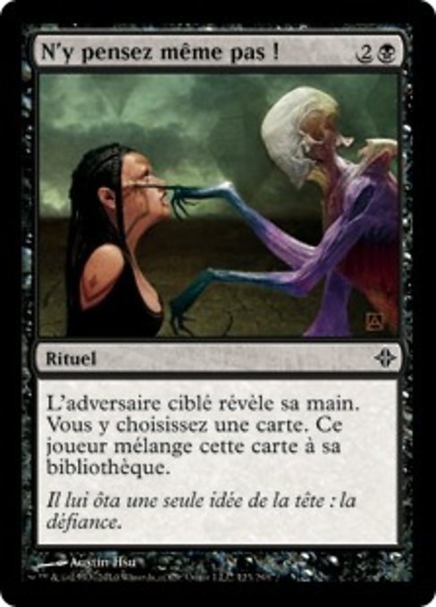 |  Variations— Parts— | Perish the ThoughtTarget opponent reveals their hand. You choose a card from it. That player shuffles that card into their library.