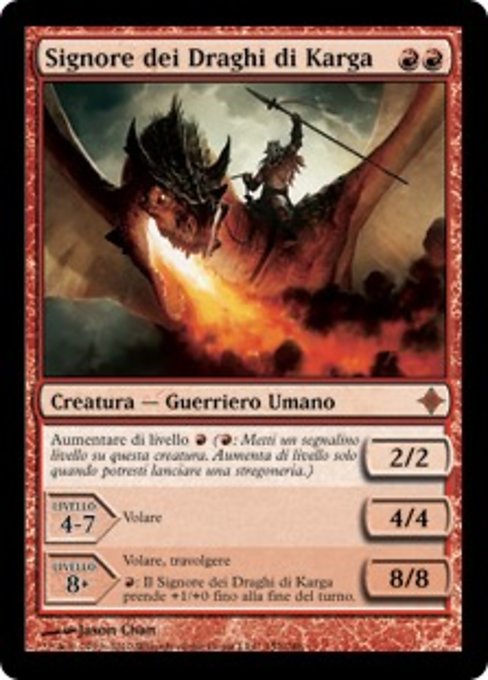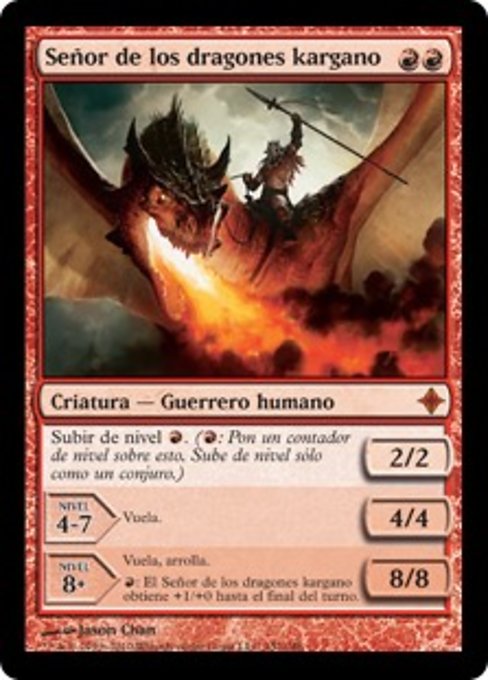 ![]() Variations— Parts— | Kargan Dragonlord2 / 2 Level up LEVEL 4-7 4/4 Flying LEVEL 8+ 8/8 Flying, trample