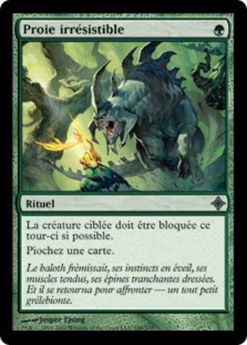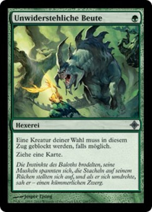 |  Variations— Parts— | Irresistible PreyTarget creature must be blocked this turn if able. Draw a card.