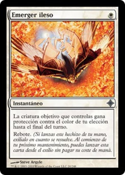 ![]() Variations— Parts— | Emerge UnscathedTarget creature you control gains protection from the color of your choice until end of turn. Rebound (If you cast this spell from your hand, exile it as it resolves. At the beginning of your next upkeep, you may cast this card from exile without paying its mana cost.)