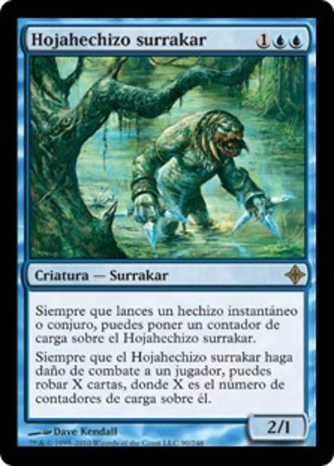 ![]() Variations— Parts— | Surrakar Spellblade2 / 1 Whenever you cast an instant or sorcery spell, you may put a charge counter on this creature. Whenever this creature deals combat damage to a player, you may draw X cards, where X is the number of charge counters on it.