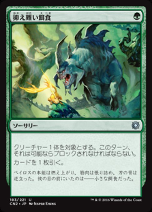 |  Variations— Parts— | 抑え難い餌食クリーチャー1体を対象とする。このターン、それは可能ならブロックしなければいけない。 カードを1枚引く。