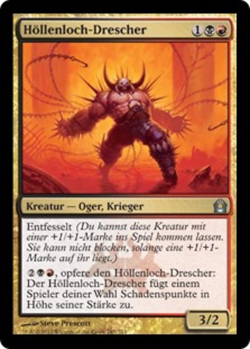 |  Variations— Parts— | Hellhole Flailer3 / 2 Unleash (You may have this creature enter with a +1/+1 counter on it. It can't block as long as it has a +1/+1 counter on it.)