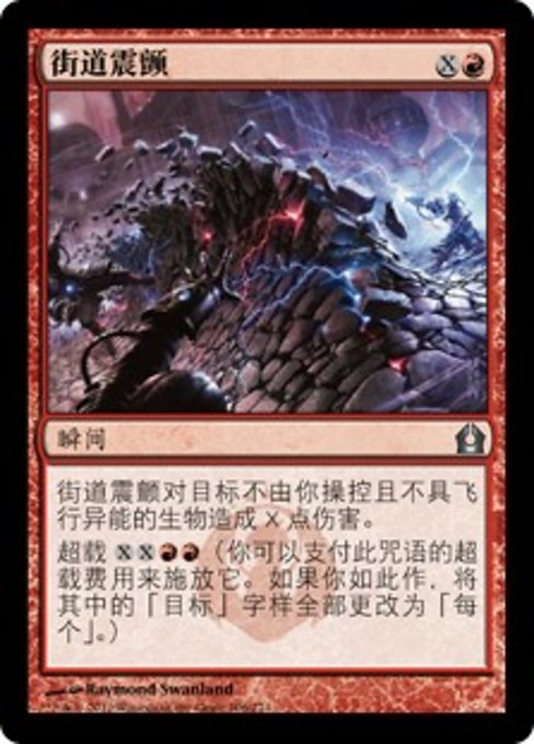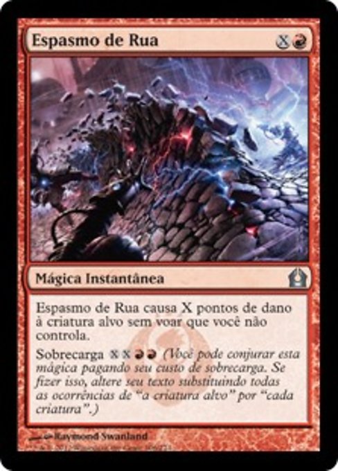 |  Variations— Parts— | Spasme de rueLe Spasme de rue inflige X blessures à une créature sans le vol ciblée que vous ne contrôlez pas. Surcharge