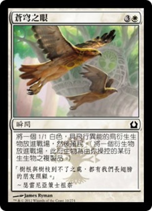 ![]() Variations— Parts— | Occhi nel CieloMetti sul campo di battaglia una pedina creatura Uccello 1/1 bianca con volare, poi popola. (Metti sul campo di battaglia una pedina che è una copia di una pedina creatura che controlli.)