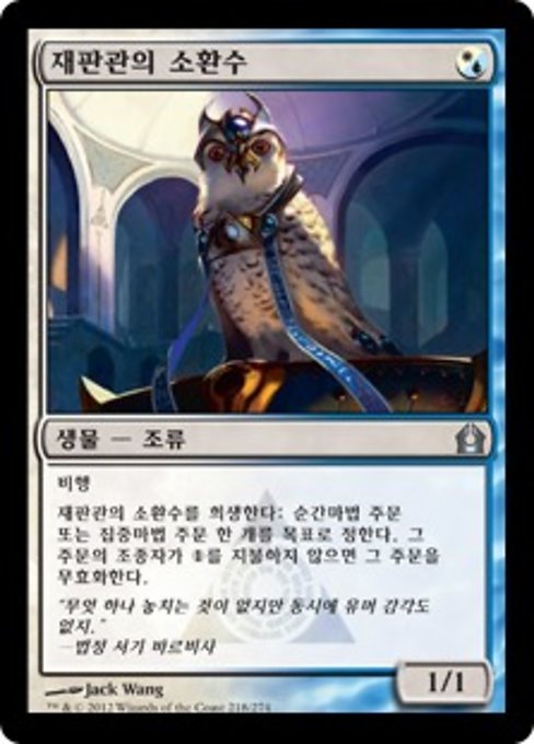 ![]() Variations— Parts— | Familiar do Juiz1 / 1 Voar Sacrifique Familiar do Juiz: Anule a mágica instantânea ou feitiço alvo a menos que seu controlador pague