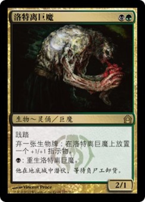 ![]() Variations— Parts— | 洛特离巨魔2 / 1 践踏 弃一张生物牌:在洛特离巨魔上放置一个+1/+1指示物。