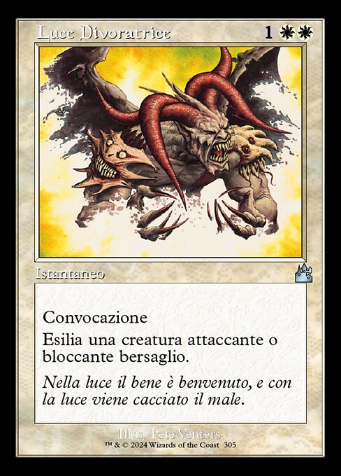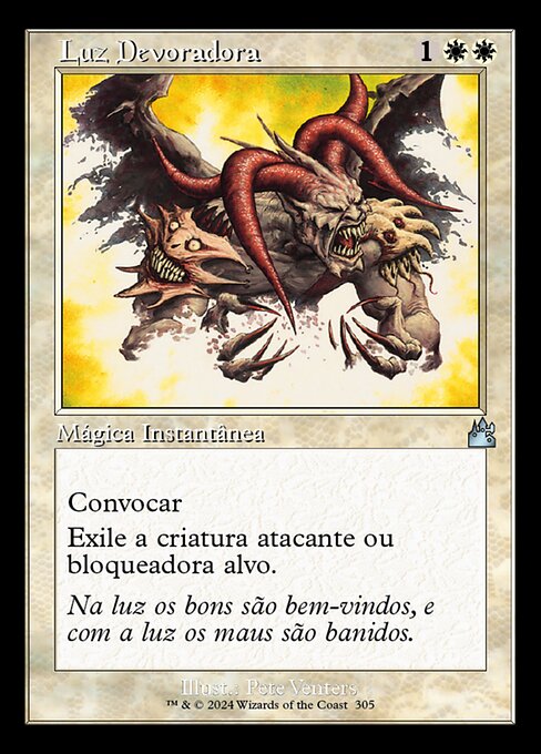 |  Variations : 1Parts— | Devouring LightConvoke (Your creatures can help cast this spell. Each creature you tap while casting this spell pays for  Exile target attacking or blocking creature.