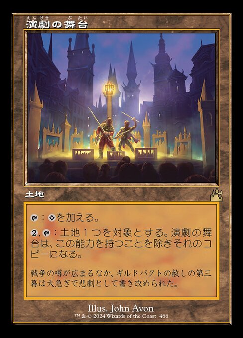 LegalitiesLegal Duel Brawl Penny Legacy Modern Pioneer Vintage Historic Timeless Commander Gladiator Oathbreaker Not Legal Predh Future Pauper Alchemy Standard Oldschool Premodern Standardbrawl Paupercommander RulingsThe copy effect created by the last activated ability doesn't have a duration. It will last until Thespian's Stage leaves the battlefield or another copy effect overwrites it. The permanent will no longer have the first ability of Thespian's Stage.